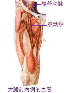(1)股动脉:由髂外动脉延续,行于股三角内,下降至腘窝移行为腘动脉。