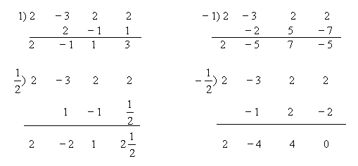 因为该方程的有理根pq都是2的约数,所以它们是1,-12和-2.因此的可能值为1,-12和-2.用综合除法(见§2,一)