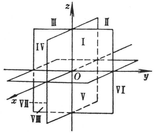 为八个卦限,在各个卦限里点的坐标x, y, z的符号为