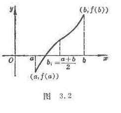 假定f(x)在[a,b]上连续,且f(a)f(b)<0(这里假定f(a)<0,f(b)>0),取区间[a,b]的中点