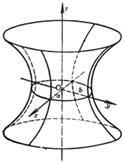 与双曲线的渐近线类似,通过z轴的每个平面与双曲面的交线为一对共轭双曲线,与锥面的交线是两条直线,即这对双曲线的渐近线.