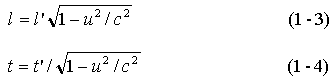 这些方程是狭义相对论理论的基本方程。我们知道,有收缩系数一定的含义:时空偏转因数。它的空间 - 时间并导致移动标尺的收缩和移动时钟的延迟的旋转。