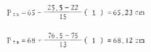 两人计数的均数都是500,能说两人的检验技术相同吗?不能,因为甲的计数结果比较密集,而乙的分散,因此甲的检验精度显然比乙的高。从上可以看出:描述一群变量值,除用平均数等表示其集中位置外,还要说明其分散或变异情况。说明变异情况的特征值称变异指标。变异指标的种类较多,下面分别介绍极差、四分位数间距、均差、方差、标准差及变异系数。 1.极差 最大值与最小值之差称极差(或全距),符号为R,是变异指标中最简单的一种。如上例甲计数的极差为520-480=40,乙的为560-440=120。可见乙的计数较甲的波动大。一般把最小值与最大值写在括号里,附在极差的后面。如上例写成40(480~520)与120(440~560)。其单位与变量值的相同。 当调查例数增多时,遇到较大或较小极端值的机会就加大,因此最大值与极差随着例数的增多而加大,但最小值却随着例数的增多而变小。 极差计算简便,但只考虑了最小、最大值,因此易受个别极端值的影响,且随例数的多少而变动,不稳定。仅用于粗略地说明变量值的变动范围。但在正态分布中可用以估计标准值范围,详见有关文献。 2.四分位数间距 极差的不稳定主要是受两极端数值的影响,于是有人将两端数据按比例去掉一定例数,这样所得数据就比较稳定了。例如两端各去掉25%,取中间50%数据的数值范围,那么只要计算P25与P75,求P75与P25之差即得四分位数间距,符号为Q。 Q=P75-P25 (4.12) 例4.7 试计算表4.8七岁男童坐高的四分位数间距 求 P25的位置102×.25=.25.5. 求 P75的位置102×.75=.76.5. 求累计频数得: L25=65,L75=68, A25=22,A75=75, f25=15, f75=13,i=1 表4.8 7岁男童的坐高