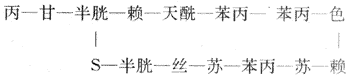 (三)生长抑素与生长素释放激素1.生长抑素(生长素释放抑制素,growthhormone release-inlease-inhibiting hormone,GHRIH,或somatostatin)是由116个氨基酸的大分子肽裂解而来的十四肽,其分了结构呈环状,在第3位和第14位半胱氨酸之间有一个二硫键,其化学结构为: