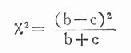 从表中资料可见有四种结果:(a)甲+乙+,(b)甲+乙-(c)甲-乙+,(d)甲-乙-;如果我们目的是比较两种培养基的培养结果有无差异,则(a)、(d)两种结果是一致的,对差异比较毫无意义,可以不计,我们只考虑结果不同的(b)和(c),看其差异有无意义,可以应用以下简易公式计算: