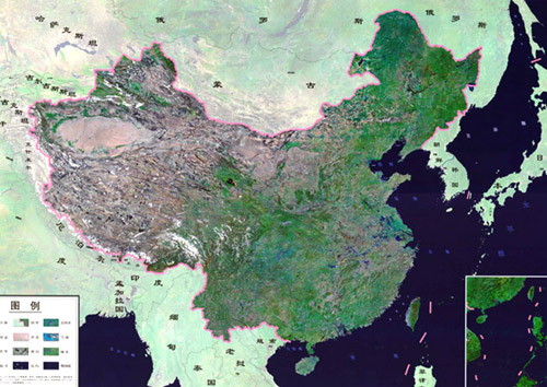 面积960万平方千米,是亚洲领土面积最大的国家,在世界众多国家中,仅次于俄罗斯和加拿大,居世界第三。 中国领土北起漠河以北的黑龙江江心,南到南沙群岛的曾母暗沙,南北相距5500公里;东起黑龙江与 乌苏里江的汇合处。西到帕米尔高原,东西相距5200公里。陆地边界长约2.28万公里。中国大陆的东部和南部 濒临渤海、黄海、东海和南海。海域面积约473万平方公里。岛屿5400个,岛屿总面积为3.87万平方公里。中国海岸线总长度3.2万公里,其中大陆海岸线1.8万公里,岛屿海岸线 1.4万公里。 中国地势西高东低呈阶梯状逐级下降。最高一级阶梯为青藏高原,平均海拔4000米以上,号称“世界屋脊”。 第二级阶梯由内蒙古高原、黄土高原、云贵高原和塔里木盆地、准葛尔盆地、四川盆地构成,平均海拔1000米 至2000米。从大兴安岭、太行山、巫山和雪峰山麓向东到海岸线,地势下降到海拔500至1000米为第三级阶梯。 第四级阶梯为中国大陆架浅海区,水深平均不到200米。全国各类地形的百分比为:山地占33%,高原占26%, 丘陵占10%,盆地占19%,平原占12%。