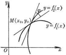 [曲线的夹角]  两条相交于点的曲线在交点的切线斜率分别为,其夹角j称为两条曲线的夹角(7.14),