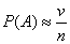当n无限增大时呈现稳定性。这一统计规律性表明事件A发生的可能性大小是事件本身所固有的、不以人们主观意志改变的一种客观属性。事件A发生的可能性大小称为事件A的概率,记作P(A)。当试验的次数n足够大,可用事件的频率近似地表示该事件的概率,即