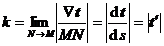 k表示包含点M的部分曲线偏离直线的程度,也是切线方向对于弧长的转动率