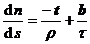 [基本定理与自然方程]   在一闭区间asb上给定任意两个连续函数k(s)(s),其中k(s)>0,则除了空间的位置差别外,唯一地存在一条空间曲线,它以s为弧长,可k(s)为曲率,(s)为挠率.