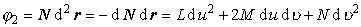式中偏导数等在点取值,EFG为第一基本量,N为曲面在点M的法线单位矢量。
