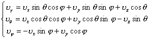 [球面坐标系与直角坐标系的互换] 由球面坐标系到直角坐标系的变换公式