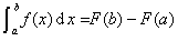 [牛顿-莱布尼茨公式] 若函数f(x)在区间[a,b]上连续,或分段连续,则f(x)在[a,b]上有原函数,设F(x)是f(x)在[a,b]上的一个原函数,则