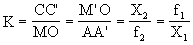 其中u是物距——代表物到透镜(或面镜)的距离;v是像距——代表像到透镜(或面镜)的距离;f为透镜的焦距。K是像的横向放大率。此二关系式对三种光具组都适用。下表表明在三种透镜中应用情况。