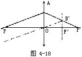 【物像公式】 描述物像位置以及它们和透镜或透镜组的特征量之一(焦距)之间的关系式。对一个薄凸透镜可以认为是由底面朝向透镜中央的许多棱镜的集合,而这些棱镜的顶角是很小的,对于顶角很小的棱镜来说,如果构成棱镜的材料的折射率为n,顶角为A,那么在近轴光线的条件下,其偏向角δ为常数(n-1A。当棱镜给定后,近轴光线的偏向角δ是不变的。我们可以利用此关系来推导薄透镜的物像公式。如图413a所示,设PM为平行光束所任一条光线在M点入射,而OM=h,则出射光线MF′必通过透镜的焦点F′,OF=ff为透镜的焦距。根据近轴光线的条件,即f>>h,偏向角近似为