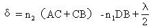 的,而光线ac处是在光疏媒质面上反射的,两者之间有了附加的半波长光程差的缘故,从图上可以看出
