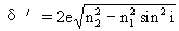 式中e为薄膜厚度,r为折射角。根据折射定律n1sini=n2sinr,因此