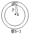 能被弹回。这种情况往往称为a粒子背向散射。假定一束平行的a粒子穿过金属箔,并设单位时间内通过单位横截面的粒子数为n0。我们可以计算单位时间内有多少个粒子的偏转角是在给定的θ与θ+dθ之间。设偏转角θ与“瞄准”距离P对应,而偏转角θ+dθ与“瞄准”距离PdP对应。在此情况下,偏转角在0~θ+dθ之间的粒子,是那些穿过以A为中心,以P为半径所作的宽为dP的环的面积中的粒子如图5-3所示。这样的粒子数目等于ndS,式中dS为环的面积。如果金属箔每单位面积有N个原子,则单位时间内其偏转角在θ与θ+dθ之间的a粒子的总数为