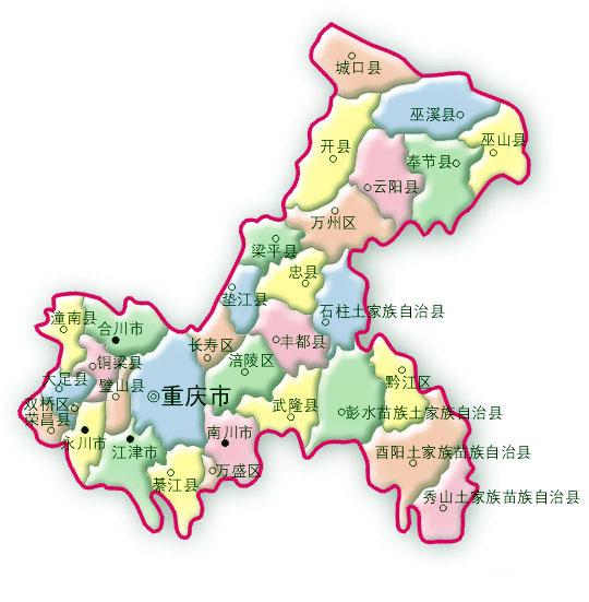 The Chongqing area 82,300 square kilometers, the whole city governs 4 county level cities, 17 counties, 15 municipal districts, 4 autonomous counties.Altogether has 683 towns, 563 townships (8 ethnic townships), 101 subdistrict offices,the municipality municipal government station is Chongqing.