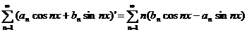 [ itemwise differentiation ]   Suppose that the Fourier series of an absolutely integrable function over the interval is