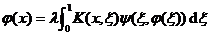 Theorem 1 assumes that K ( x , ξ ) is continuous for all x, ξ on the unit square k 0 (0 ≤ x ≤ 1,0 ≤ ξ ≤ 1) , let ô K ( x, ξ ) ô ≤ C ( C ( C is a constant ) , for all ξ on the unit square k 0 , t is also continuous, and ![]()