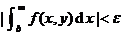 [ Consistent convergence ]   Let the function f ( x , y ) be a continuous function defined in the region R ( ax <, y 1 < y < y 2 ) , if for any given ε > 0 , there exists A positive number B = B ( ε ) only related to ε , so that when bB , for all y inequalities in the interval ( y 1 , y 2 )