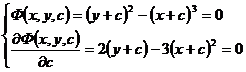 [ c - discriminant curve method ]   Let the general solution of the first-order differential equation be , where c is an arbitrary constant, and c is regarded as a parameter . From the following equations