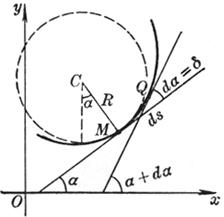 It is called the curvature radius of the curve at point M. If it is intercepted on the normal line of the concave direction of the curve , C is the curvature center of the curve at point M , and the circle with C as the center and R as the radius is called the curvature of the curve at point M. A circle , also known as a close circle . The coordinates of point C are![]()