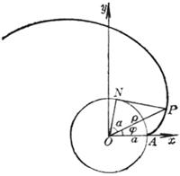 Expand into tangent NP , so the length of tangent NP is a ( a + j ), from right triangle ONP : OP = , and because = a + j , thus the involute equation of the circle is obtained![]()